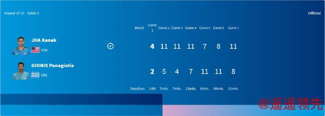 首局,在0-1落后时,樊振东打出一波7-0,迅速拉开分差。双方各得1分(8-2)后,黄镇廷连追3分,将比分迫近到5-8。关键时刻,樊振东又是连下3分,以11-5先下一城。